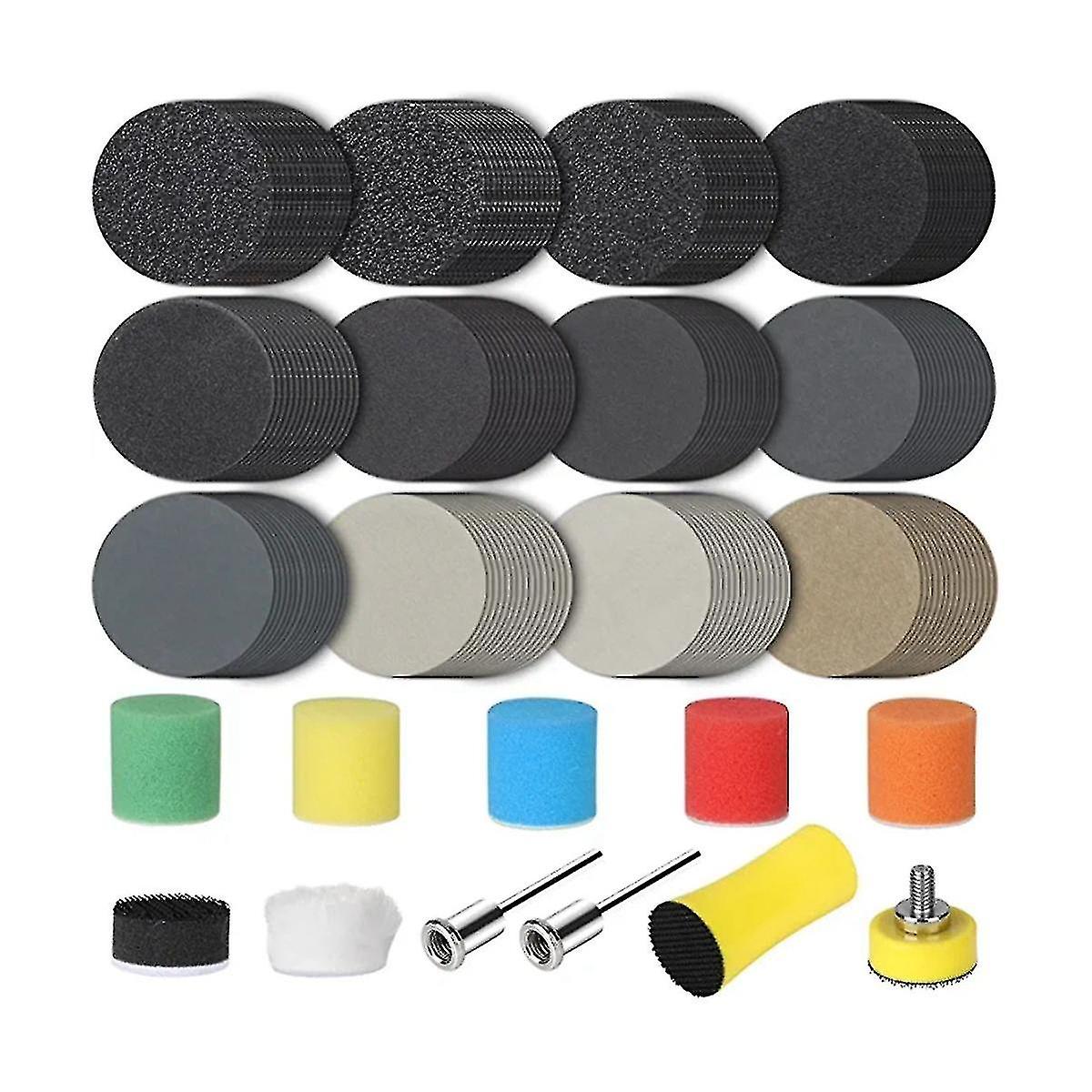 1set 1inch Sanding Discs Kit 60-10000 Grit, Sandpaper With 1/8 Inch Backing Pad & Buffering Pads