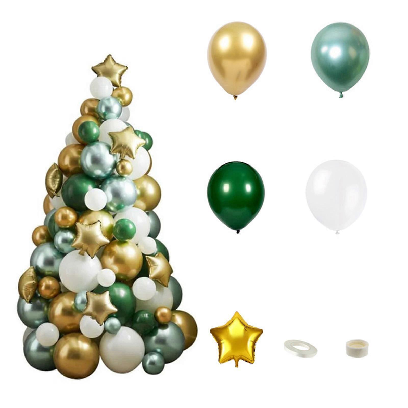 1 Set Christmas Tree DIY Balloon Tower With Golded Star Balloon For Christmas Home Party Decorations DIY Gift Supplies