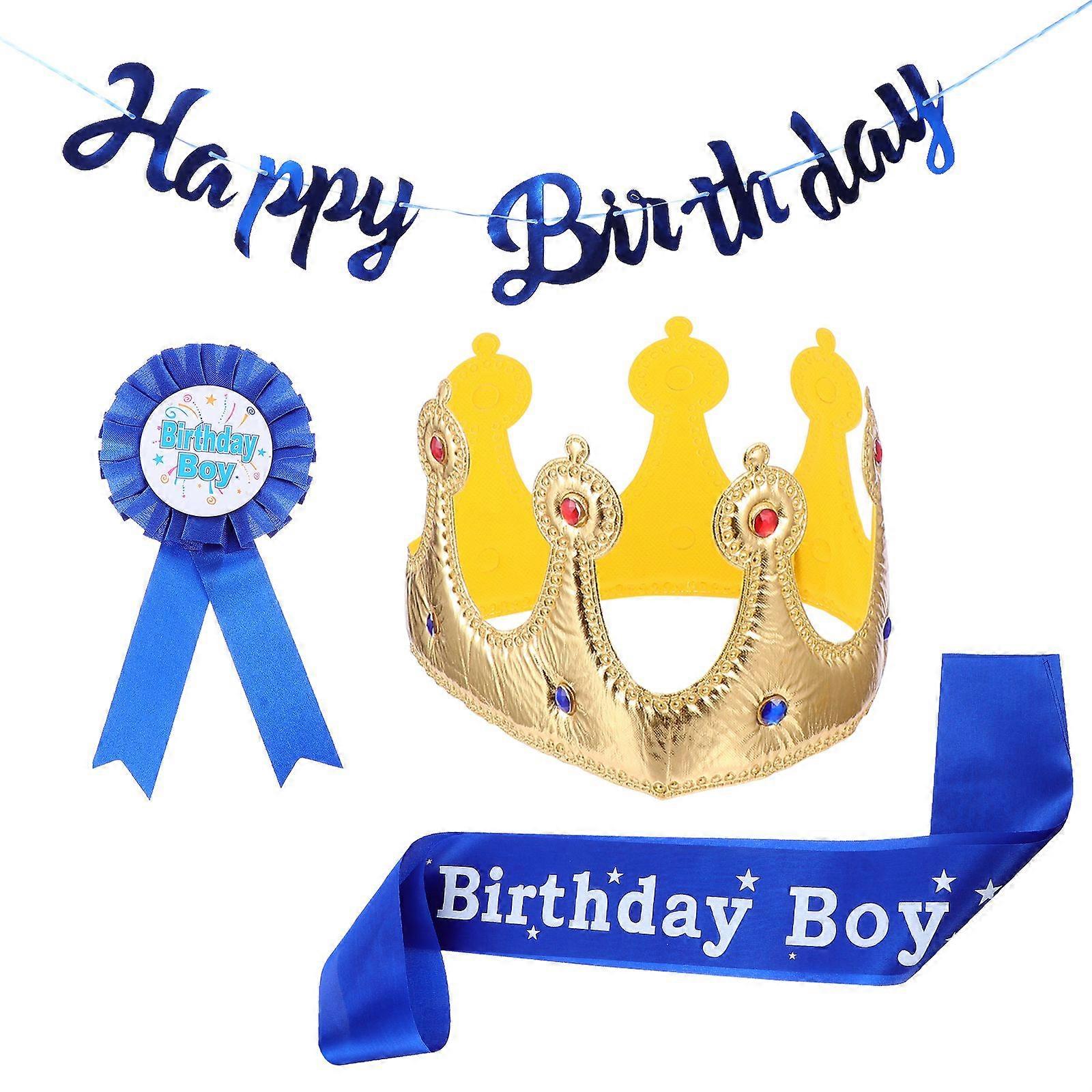 1 Set Boy Birthday King Crown Sash and Badge Banner Birthday Party Accessory