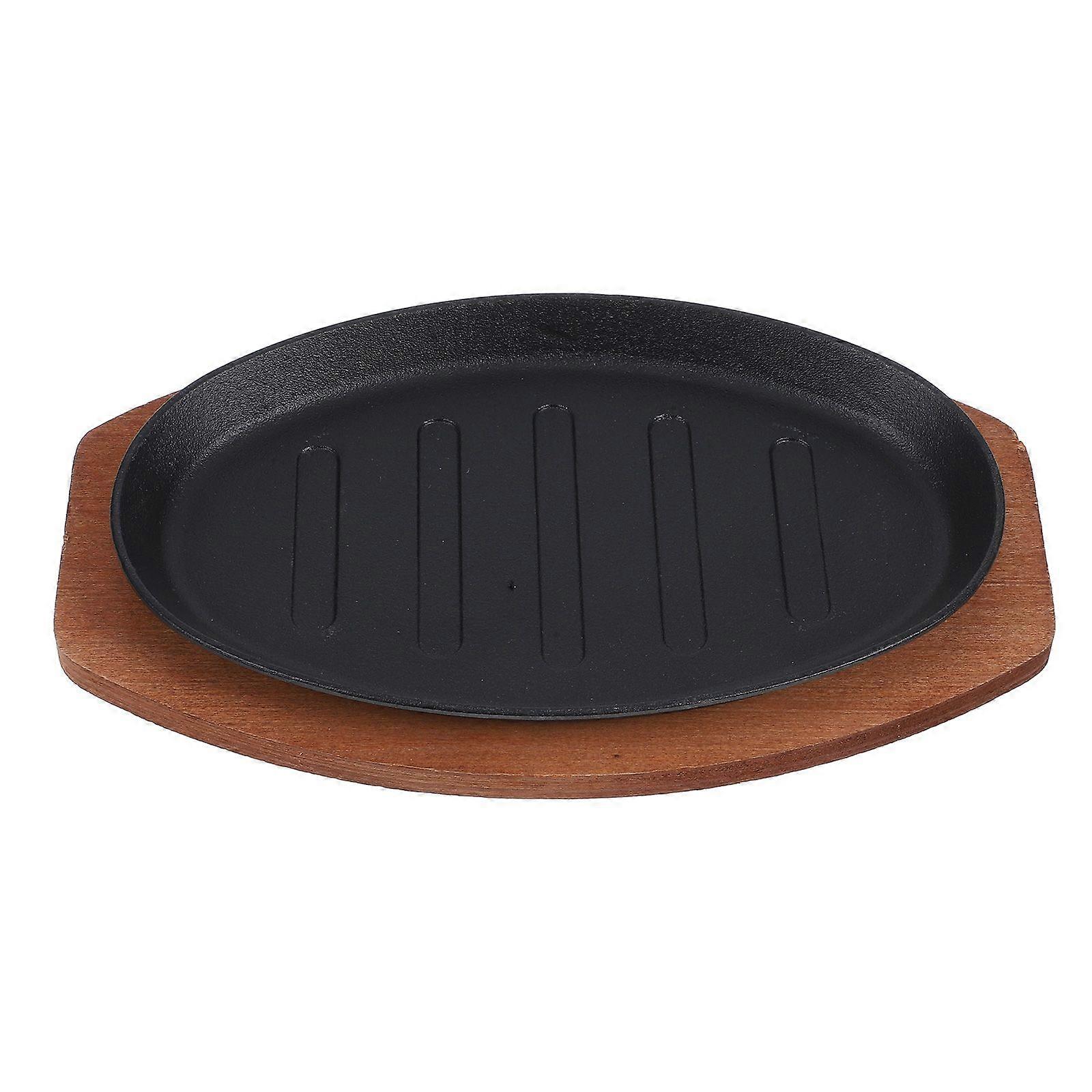1 Set Steak Plate Iron Grill Fish Plate with Wooden Tray for Home Restaurant