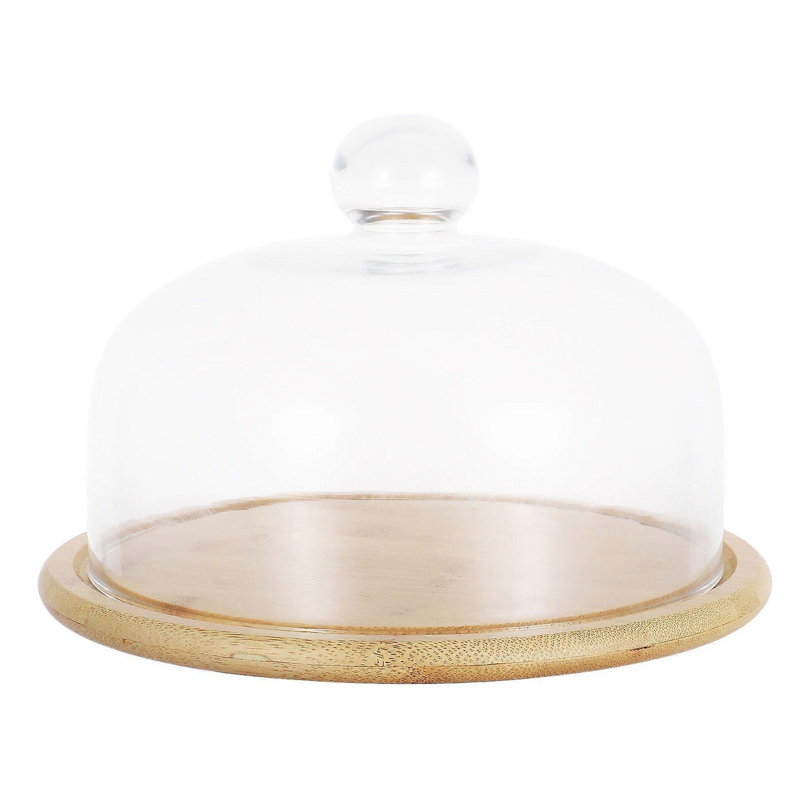 1 Set Household Plate Pastry Plate Convenient Snack Tray with Glass Cover (Wood)