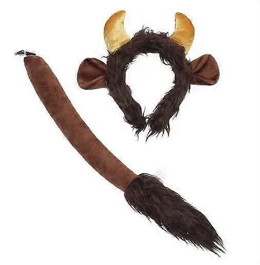 1 Set Cow Ears Headband: Bull Horns Headband And Tail Set - Costume Accessory For Animal Cosplay Halloween Christmas And Theme Parties