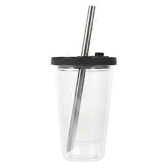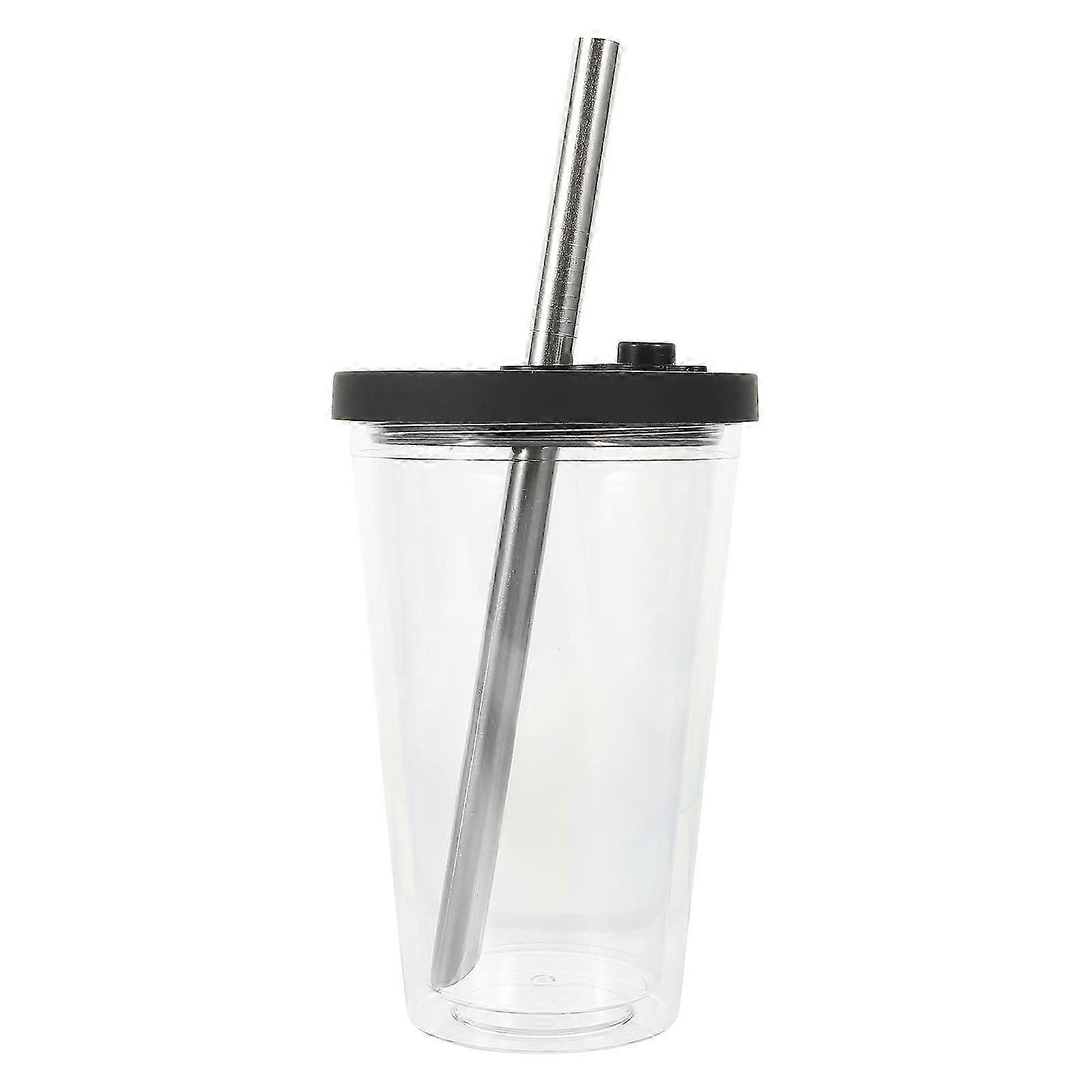 1 Set Double Layered Cup Thickened Cold Drink Cup Reusable Boba Tea Cup with Straw