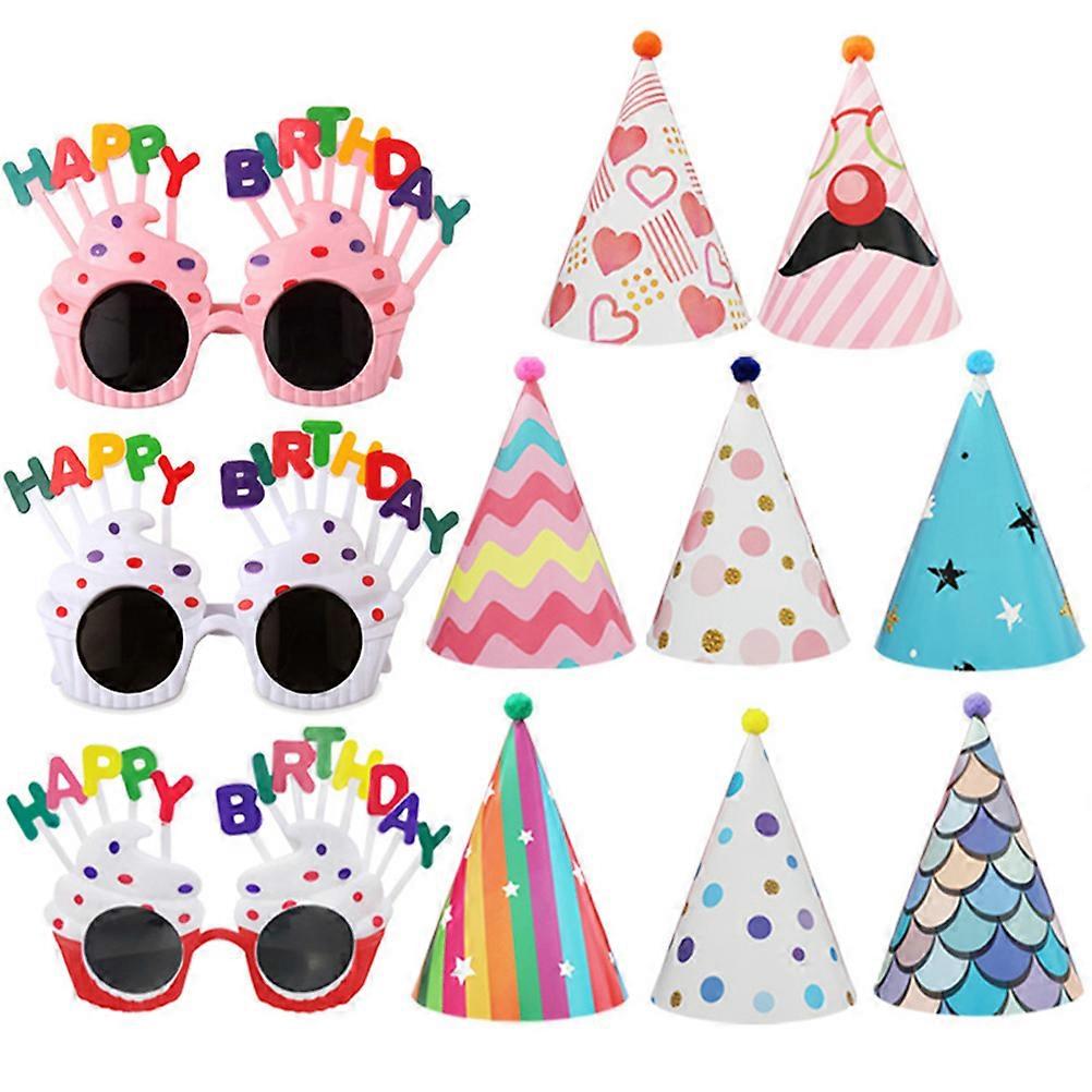 1 Set Birthday Party Supplies Party Eyeglasses Birthday Cone Hats Photo Props