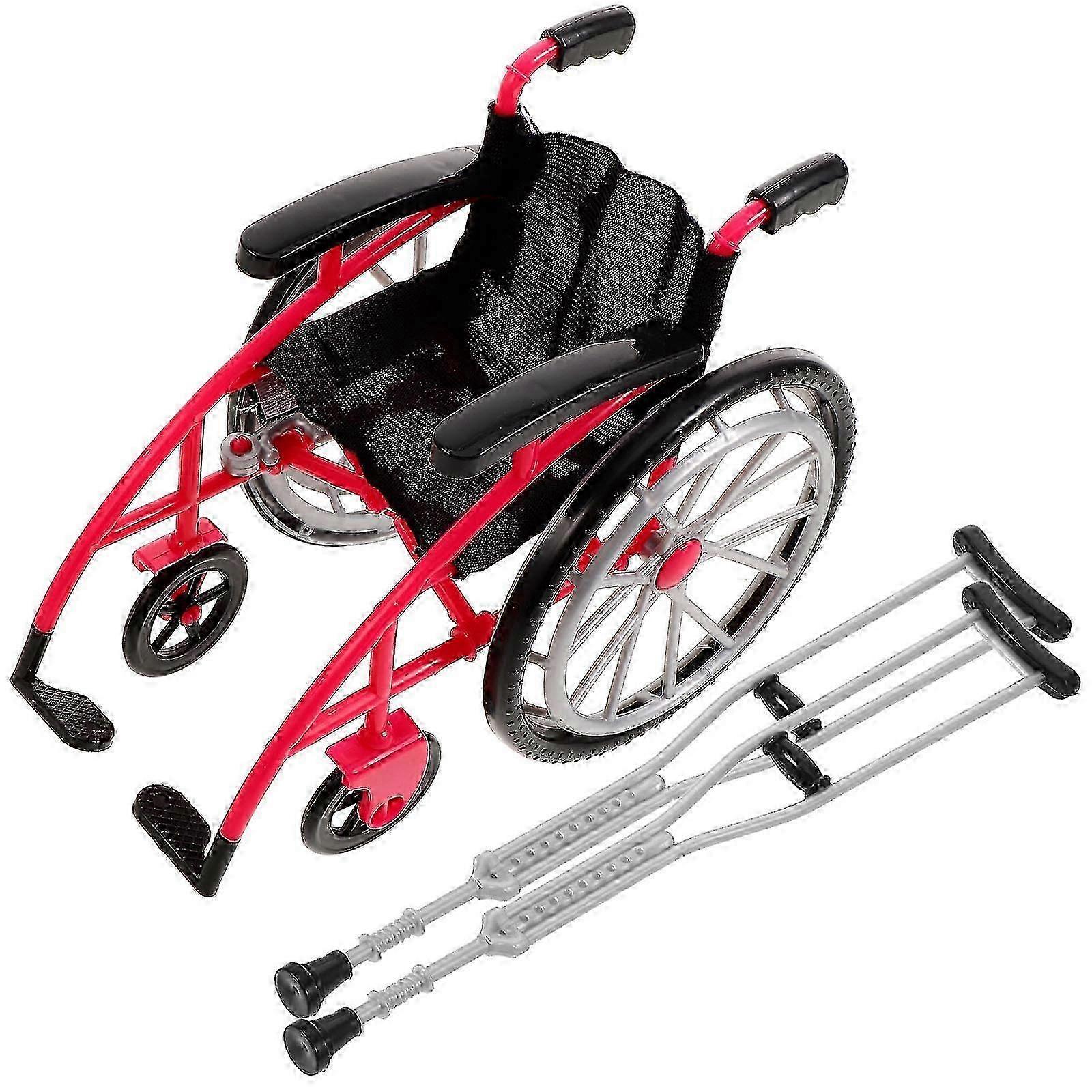 1 set of Doll Wheelchair and Crutches Playset Miniature Wheelchair Crutch Models
