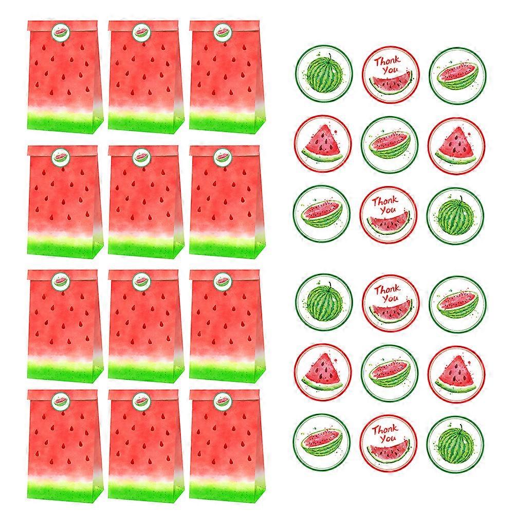 Description Made of premium material for long time and durable use. They can hold candies, dessert, or other treats and easy to store. With watermeolon pattern design, more lively. You can put your candies in the bags and then givethem toyour friends or families. Features - Color:Red. - Material:Paper. - Size: About19.80X11.90X7.80cm/7.78X4.68X3.07inch. - Bright watermelon pattern printing, set off the summer holiday atmosphere. - Convenient for packing in restaurant food packing in stall or for family parties. - Light weight, chic and decorative, the compact and stylish gift bags are your best choice. - Three-dimensional cutting, beautiful and tasteful, fine workmanship, not easy to fall off. - Using food grade paper, safe and odorless, it can be used with confidence.Package list: 12 x paper candy bags 2 x stickers
