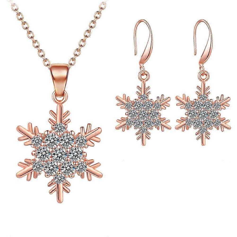 1 Set Christmas Gifts Snowflake Earrings Necklace Set Zircon Jewelry (Rose Gold)