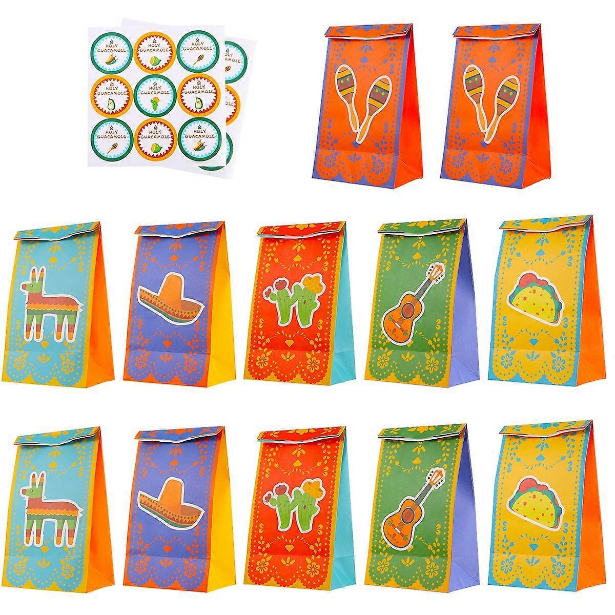 1 Set Gift Paper Bag Candy Tote Bag Mexico Party Theme Bag (12 Bags+18 Stickers)