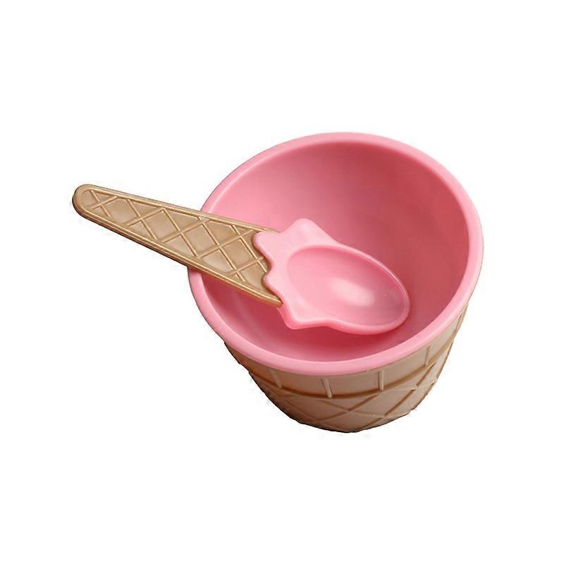 1 Set Ice Cream Bowl Eco-friendly Cartoon Shape Plastic Dessert Yogurt Cup with Spoon for Home