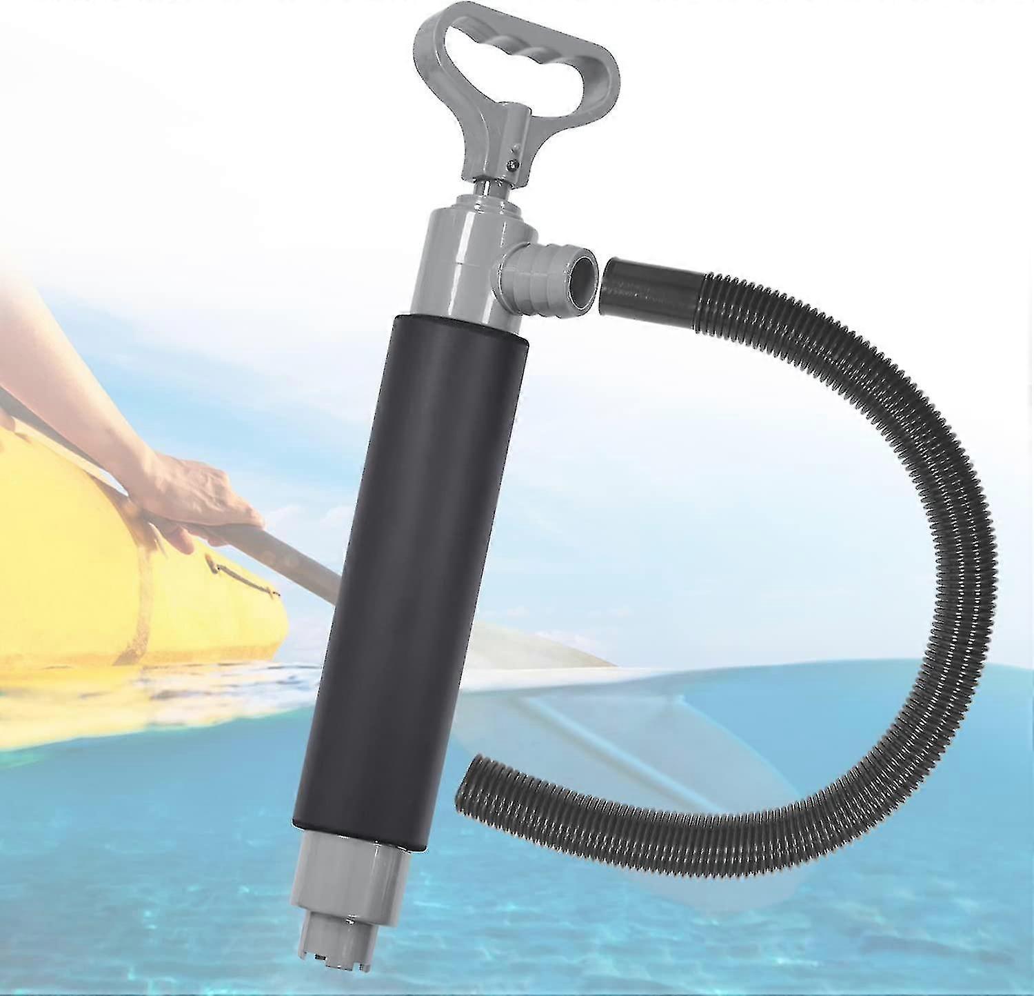 Pumps Water Quickly: Hand water pump gear shape design of water inlet can suck more water quickly and effortlessly, and the water inlet is equipped with a one-way valve plate, so that the water in the pipe will not flow back. Suitable for bilge water or transfer, its easy lever action allows fast pumping.Floating Hand Pump: The handle of kayak pump is ergonomically designed, very easy to grasp, 1CM thick EVA foam is non-slip, comfortable to hold, and falling water can float, easy to see yellow.Comes with Hose: Bilge pump manual drainage outlet can be covered with an extension hose with an inner diameter of about 2.5cm to extend the drainage distance. Kayak pump lightweight, portable and requires no power, making it ideal for use as an emergency ambulance or kayak.Wide Application:The sea kayak bilge pump be used to evacuate water from inside your kayak or hatch to prevent a capsizing or swamping. Perfect for boats, canoes, kayaks or any other environment that requires a hand pump to drain more water.Produc Basic Information:Product Name: Manual bilge pumpMaterial: Nylon plastic, EVAColor: blackWeight: 350gLength: 46cm/18.11inThe longest stretch: 73cm/28.74inApplication: Drainage in the kayak, canoe, cabinKayak Hand Pump with Hose Features:1, This is a great safety device to save yourself when you are in danger of submerging your kayak.2, Leak-proof design with removable gasket to prevent water from flowing out of the water inlet.3, Double drainage design enables you to discharge maximum 0.4L with a pull and push.4, The kayak hand pump also be used to get your boat back into a paddlable state.5, Also for Marine,RV and campers,industrial, and many other applications.6, Compact and lightweight, very easy to carry.Package Included:1 X Kayak Bilge Pump1 X Hose