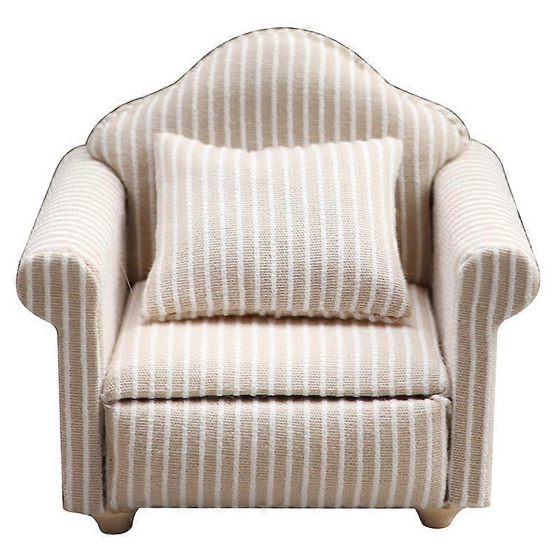 1: 12 Mini Furniture Sofa DIY Decoration Doll House Mini Furniture Living Room Furniture White Beige Sofa with Pillows