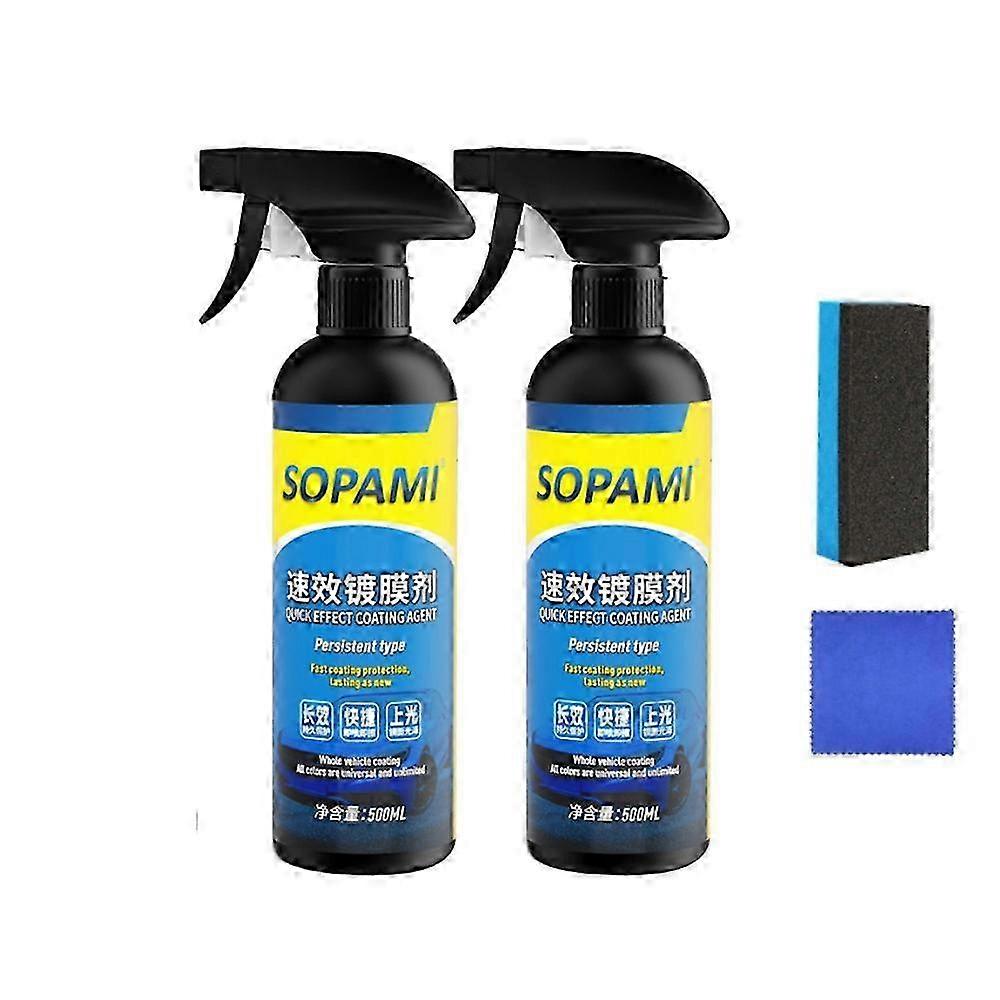 Professional ProtectionSopami Car Coating Spray forms a durable protective layer that enhances your vehicle's shine while providing long-lasting defense against scratches, UV rays, and environmental contaminants.   Instant Shine & WaterproofQuick-drying formula creates a hydrophobic lotus effect, repelling water and dirt for easier cleaning. Maintains factory-like gloss even after rain exposure.   Advanced Formula Features:  - Increases paint surface hardness  - High-temperature resistance (prevents oxidation)  - Self-cleaning hydrophobic technology  - Scratch-reducing protective layer  - Restores original paint brilliance   Complete KitIncludes:  - 500ml coating spray bottle  - Precision spray nozzle  - Microfiber application towel   Universal ApplicationPerfect for cars, motorcycles, SUVs, and all painted vehicle surfaces. Achieve professional-grade protection in minutes without expensive detailing services. Note: Due to the light and screen setting difference, the item's color may be slightly different from the pictures. Please allow slight dimension difference due to different manual measurement.