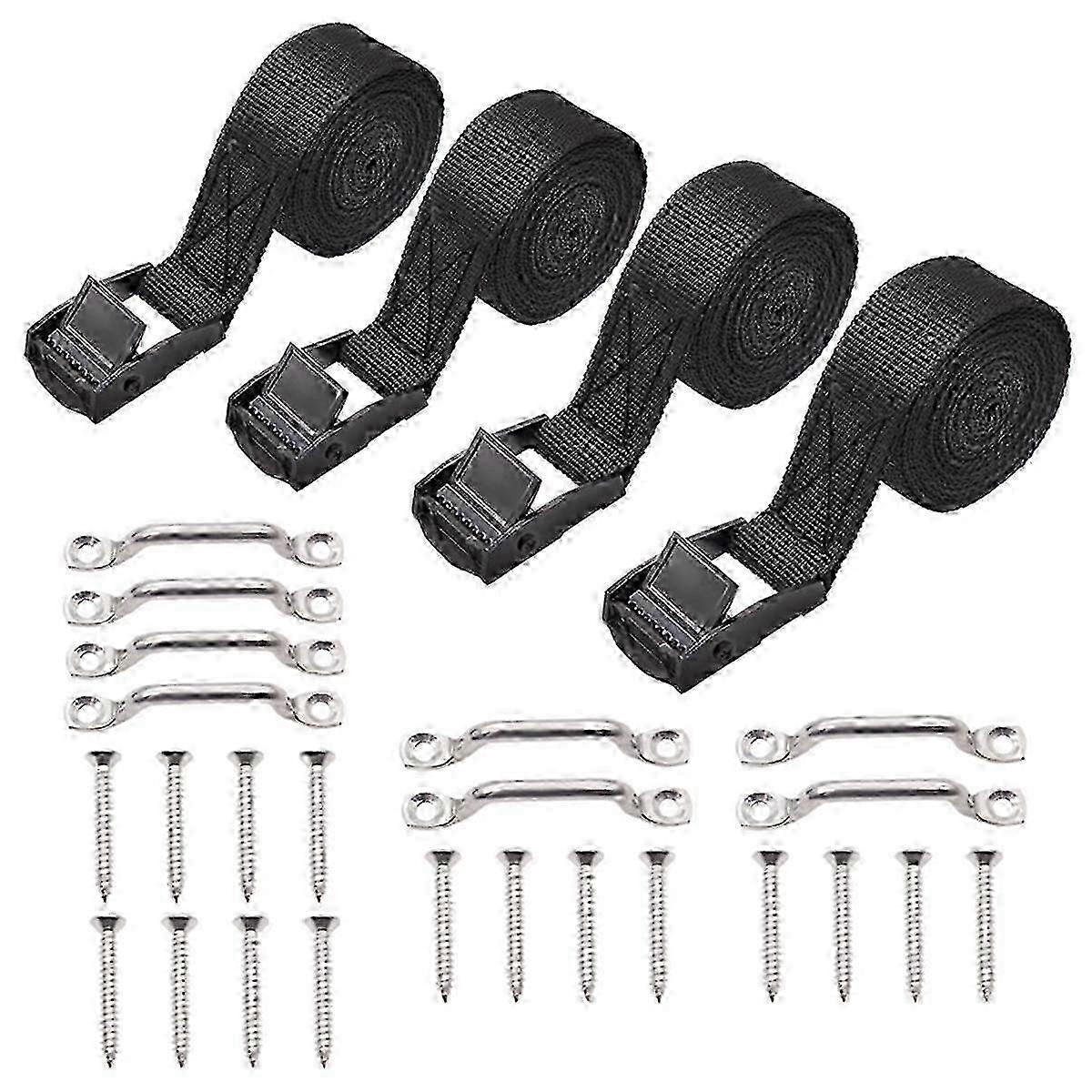 1inch X 4ft Battery Tie Down Strap Kit With Stainless Steel Cam Buckle, Bracket And Screws For Boat