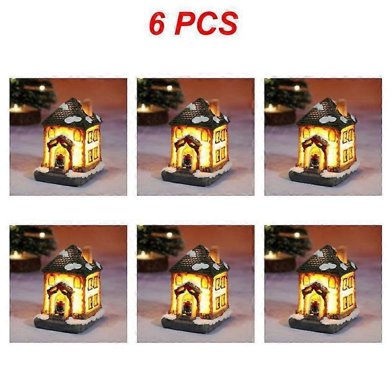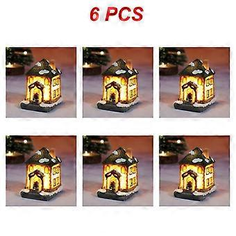 1~8PCS Christmas Led Light House Christmas Tree Ornaments LED Resin Small Village House Xmas Glow Decor