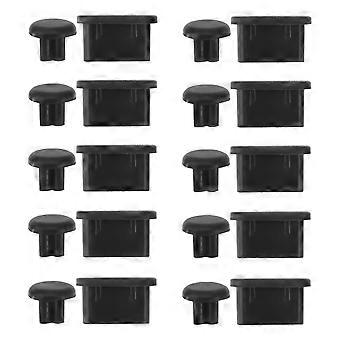 10 Pairs 3.5mm Earphone Jack Anti Dust Plugs And Type-C Port Plugs for Android Phones Laptop PC (Black)