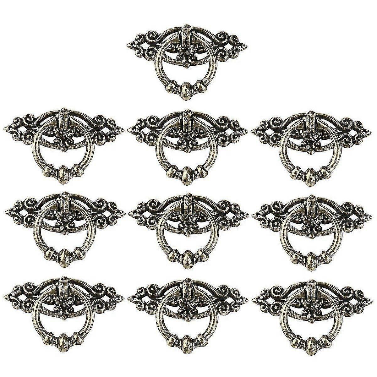 10 Pack Vintage Cabinet Cupboard Drawer Ring Pull Handles Knobs Antique Brass