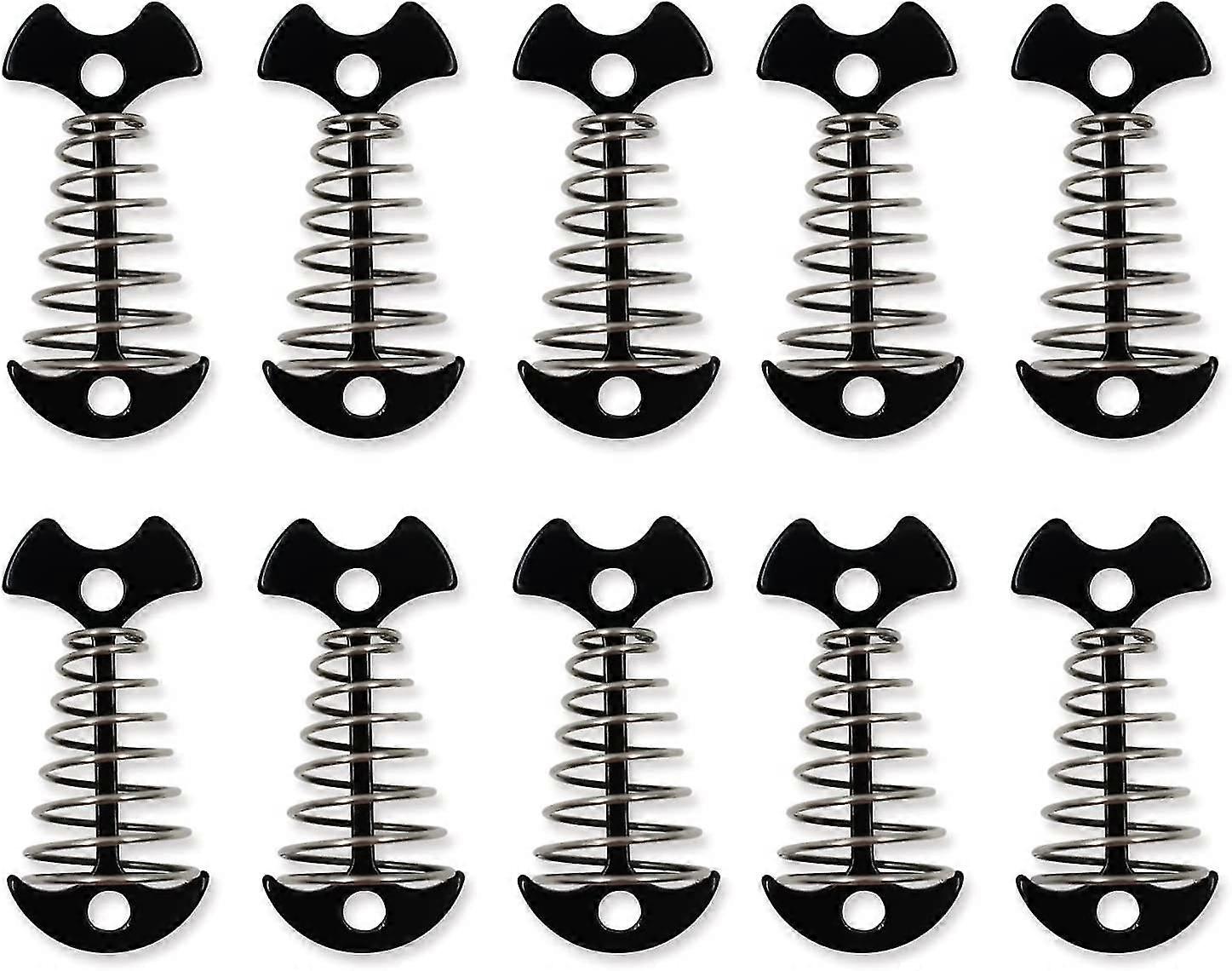 10 Pack Anchor Stakes With Spring Buckle Tent Rope Tensioner Windproof Aluminum Stakes For Camping Hiking (black)