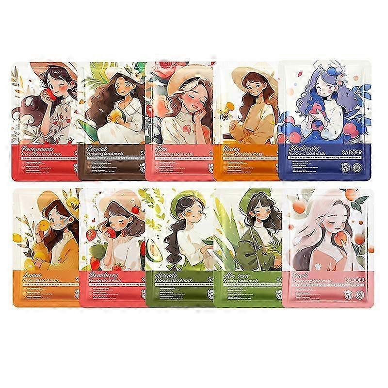10 Pack Hydraiting Facial Sheet Mask, Moisturizing Skincare Essence Face Mask for All Skin Types, Natural Nourish Treatment Facial Mask Set