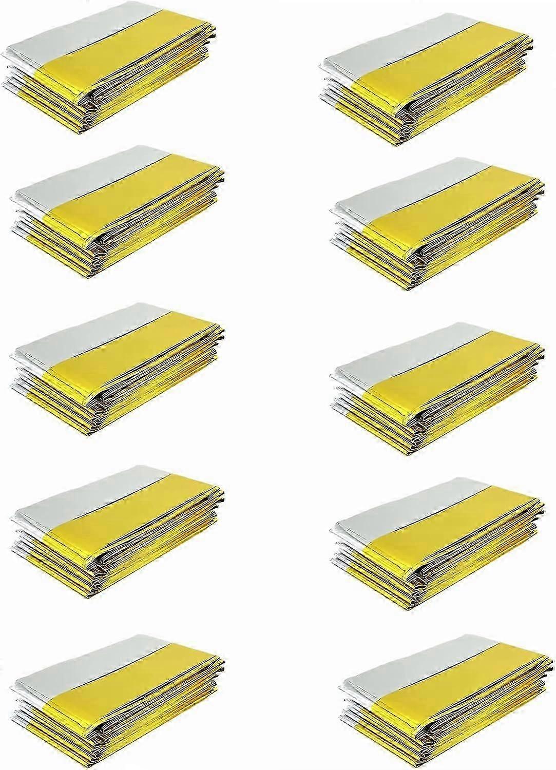 [10 Pack] 210 x 160cm Extra Large Emergency Blanket Gold Foil Waterproof Mylar Survival Blanket Heating for Camping, Hiking