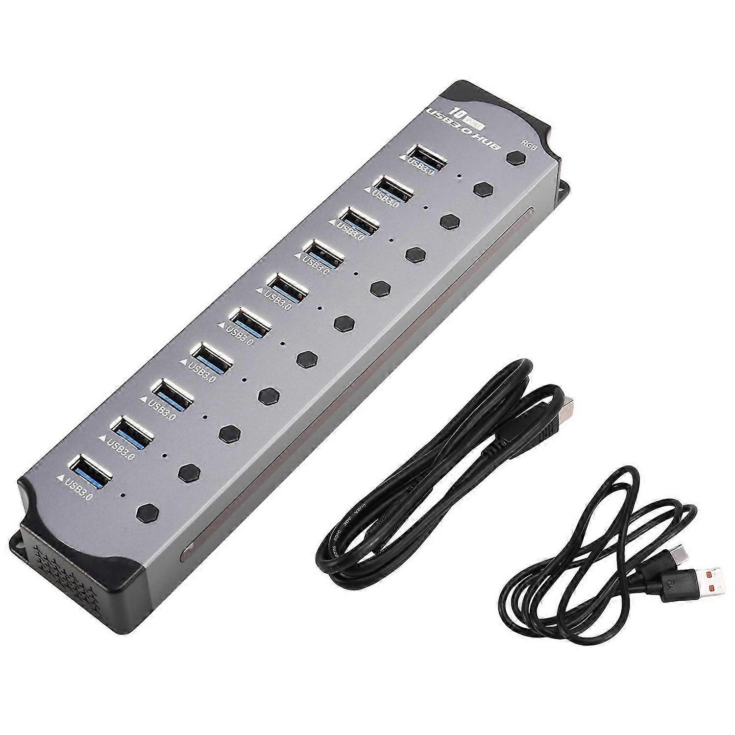 10 in 1 Powered USB HUB 10 Ports USB Adapter USB Splitter USB 3.0 Interface Individual Switch RGB E-
