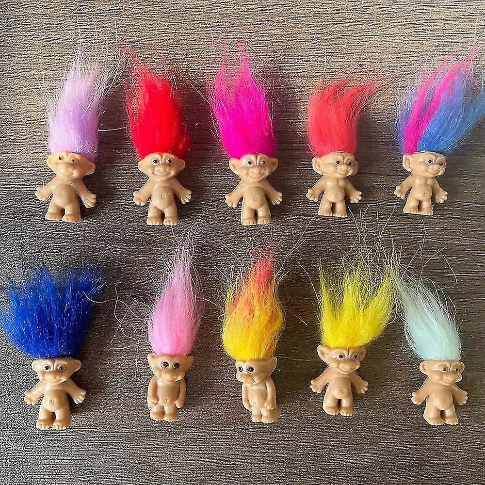 10pcs/set Mini Troll Dolls, Pvc Vintage Trolls Lucky Doll Mini Action Figures Cake Toppers Chromatic Adorable Cute Little Guys Collection, Party Favor