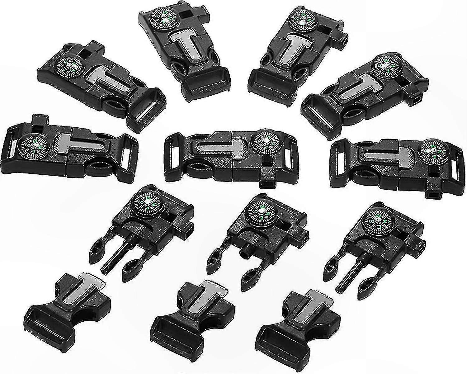 10Pcs Survival Whistle Buckle with Fire Starter Flint Scraper and Compass for Camping Hiking Outdoor Adventures