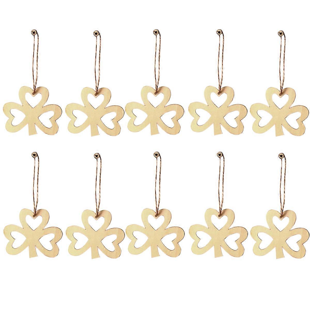 10pcs Wood Clover Hanging Drop DIY Creative Beautiful Saint Patrick's Day Hanging Decor for Festival Home Party Gathering (Send a Hemp Rope About 30cm