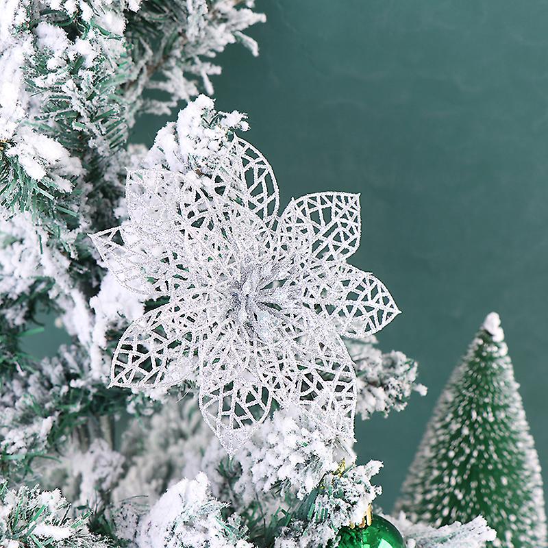 10pcs Artificial Flowers Plastic Glitter Flowers Christmas Tree Ornament Decor