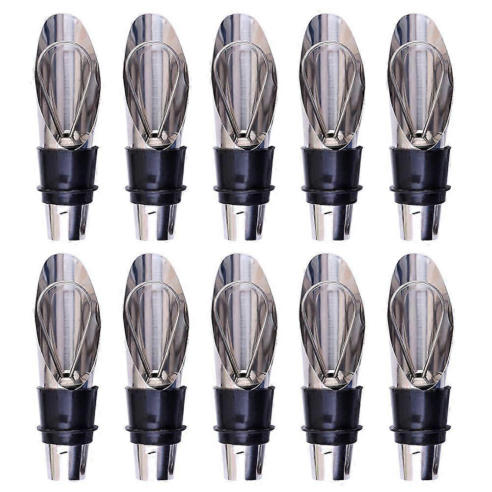 10 Pcs Stainless Steel Oxygenating Wine Aerating Pourer Funnel Red Wine Stopper Liquor Aerating Decanter Spout Bottle Stopper for Home Restaurant Banq