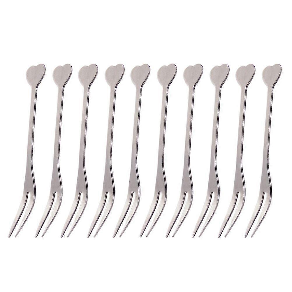 10pcs Stainless Steel Fruit Fork Heart Shape Fruit Picks Party Supplies for Hotel KTV Bar