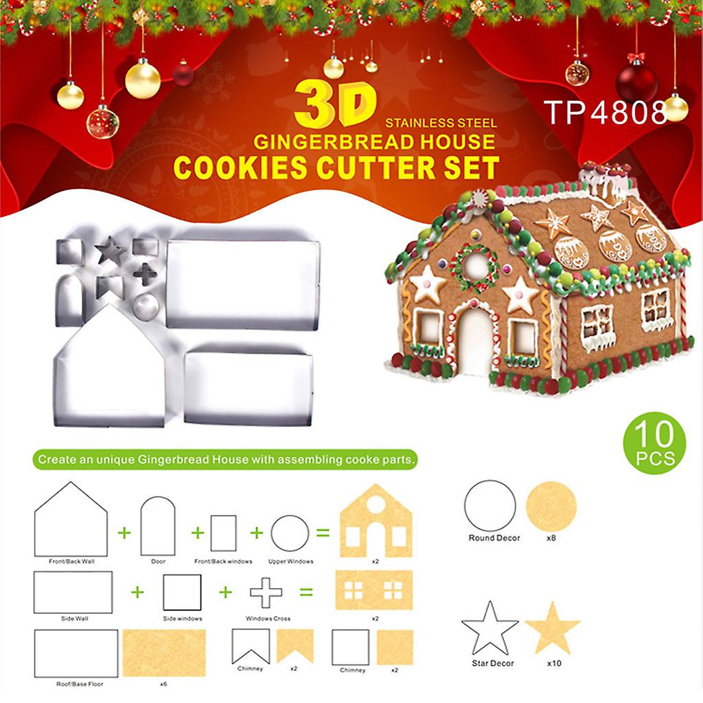10 Pieces Stainless Steel Cookie Cutter Cookie Biscuit Baking House Shape Moulds