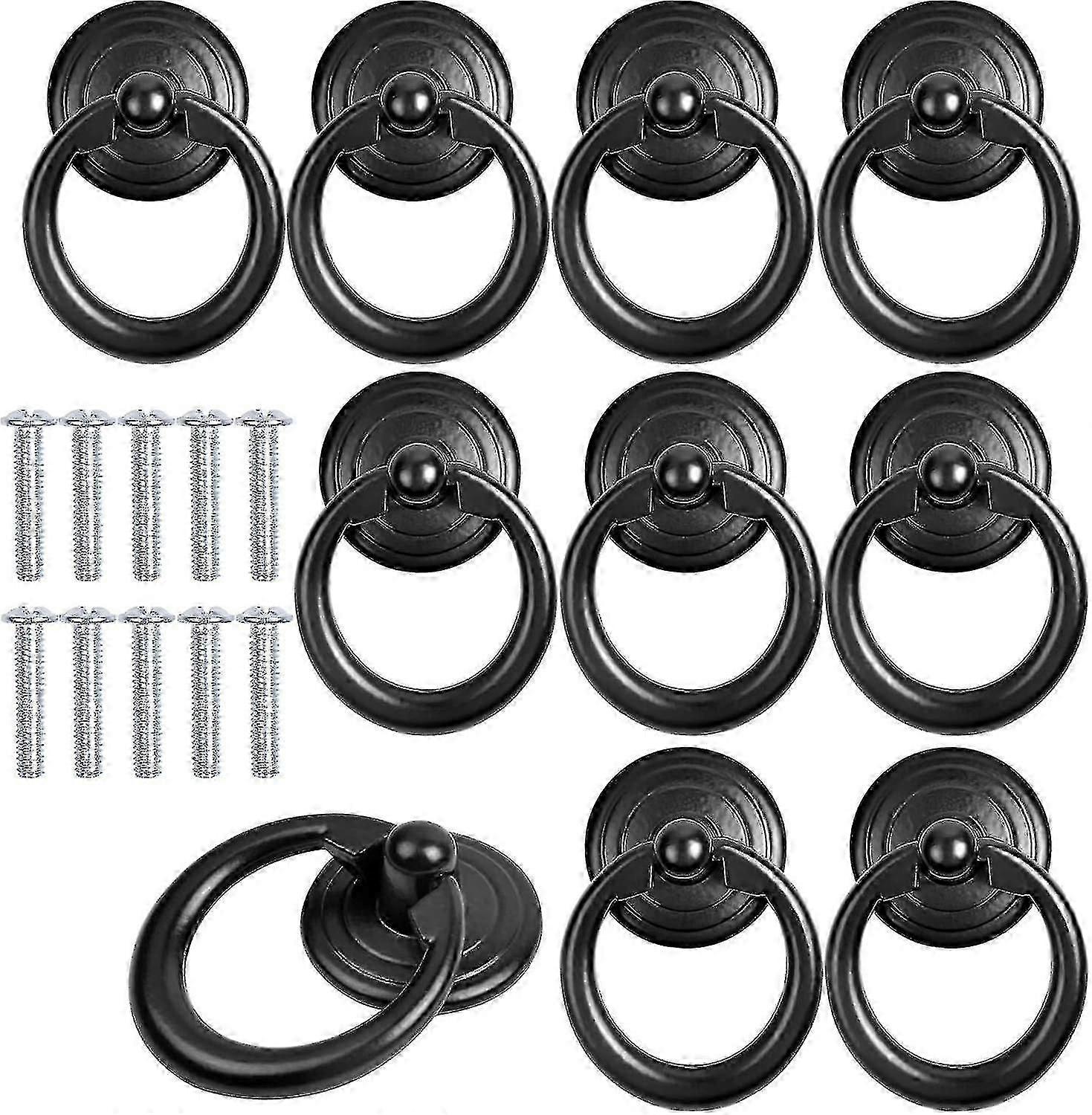 10 Pcs Black Cabinet Handle Metal Door Knob Drawer Ring Pull Handle Classic Round Furniture Handle Furniture Knob Pull Handles-CE