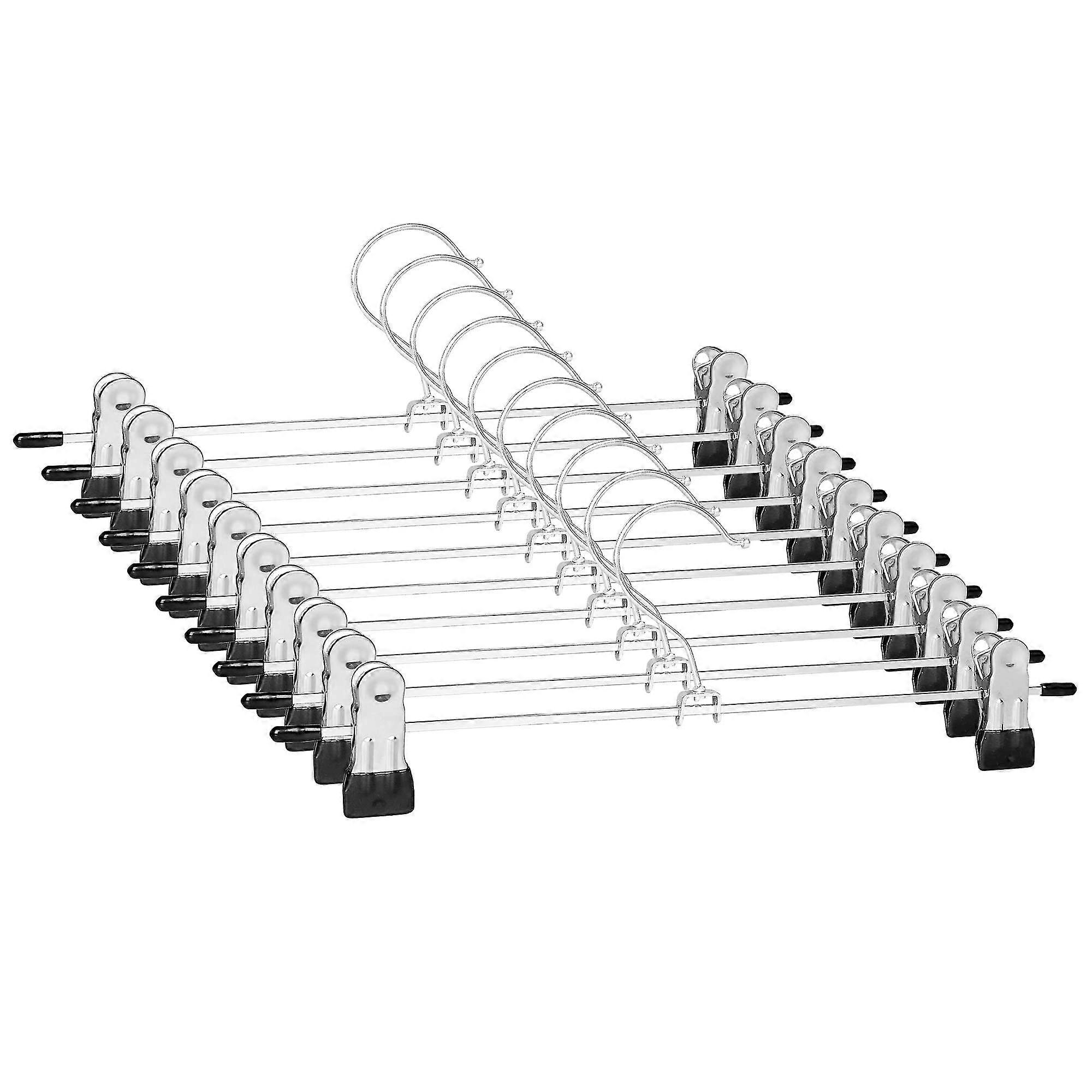 10 Pcs Pant Hangers Space Saving Skirt Hangers With Clips Adjustable Non-slip Coat Suit Skirt Hangers