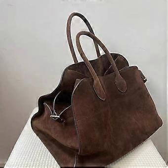Tote Bag Women's 2025 New Autumn and Winter High-end Niche Design Large-capacity Retro Commuter Handbag-"Exterior Material: Suede Pattern: Barrel Lining Material: Polyester Dimensions: 32x27x25cm"
