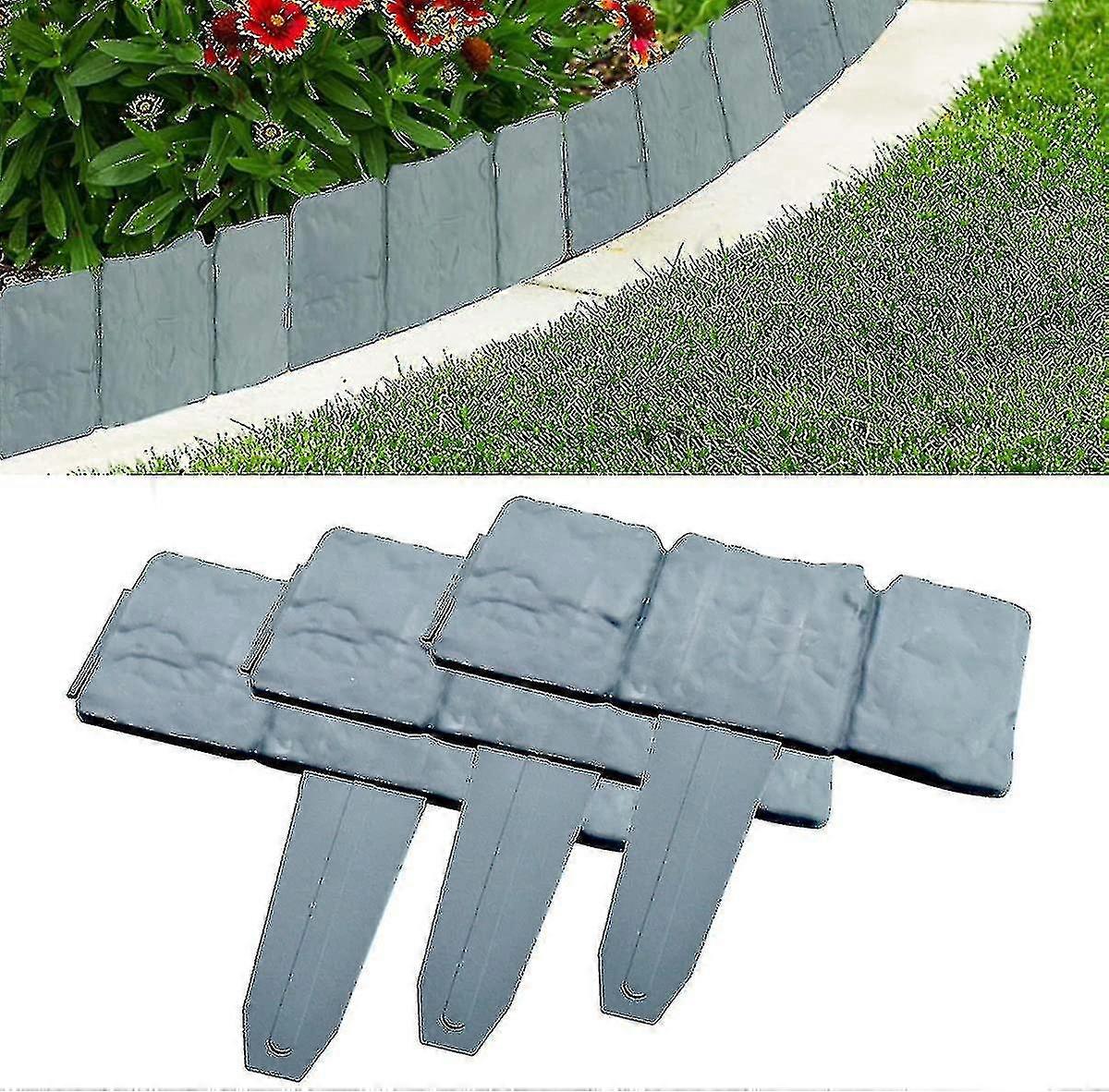 10 Pcs Garden Edging, Garden Lawn Edging Fence Edging Gray Plastic Garden Lawn Edges Palisade Stone Effect Lawn Fenceedging Compatible Garden Lawn