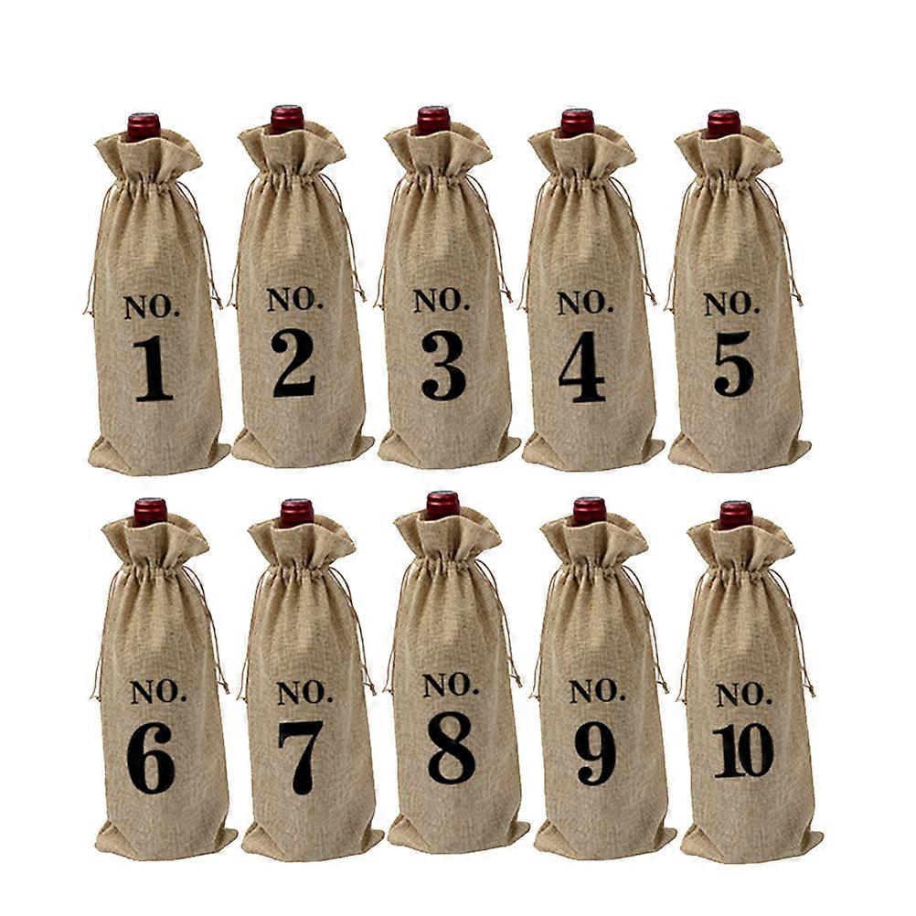 10pcs European Style Wine Bottle Bag Vintage Linen Bottle Bag Wedding Number Wine Packaging Pouch (Number 1-10)