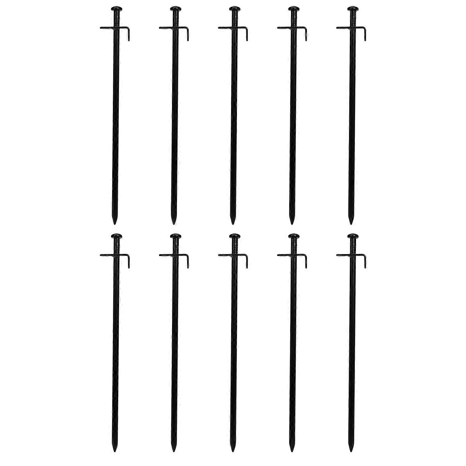 Practical and convenient tent stakes with anti-falling quick-hook hole and two lanyard methods for secure outdoor use. Made of high-strength cast iron material with high hardness, ensuring durability and resistance to bending and rust. Enlarged hat design increases contact area with hammer, reducing chances of missing and allowing for better fixing effect. Anti-detachment design prevents rope from detaching, ensuring reliable and safe use. Intimate flat head design avoids accidental injuries during use, prioritizing user safety. Description: Introducing our premium tent stakes, the ultimate solution for securely anchoring your tents, canopies, and garden structures. Made of solid metal with a black corrosion-resistant coating, these heavy-duty stakes are built to withstand even the toughest conditions. Unlike plastic stakes that break or bend easily, our sturdy metal stakes are designed to last. With their hook shape top and sharp point, these stakes make tree support a breeze. The hook prevents the stake from going too deep, while the hole allows for easy removal using a tent hammer. Whether you're straightening trees or providing plant support, our multi-function yard stakes are perfect for all your outdoor needs. Not only are these stakes practical and convenient, but they also feature an anti-falling quick-hook hole and two lanyard methods for added security. The high-strength cast iron material ensures durability and resistance to bending and rusting. Plus, the enlarged hat design increases contact area with the hammer, resulting in better fixing effects. We've also taken safety into consideration with our anti-detachment design under the ears to prevent the rope from detaching. And with the intimate flat head design, you can use these stakes without worrying about accidental injuries. Item Name: Tent Stakes Material: Iron Features: Heavy Duty, High Strength, Anti-detachment Design Size Details: 20cm, Length: 20cm/7.87", Diameter: 0.9cm/0.35" (Approx.) 30cm, Length: 30cm/11.81", Diameter: 0.9cm/0.35" (Approx.) Notes: Due to the light and screen setting difference, the item's color may be slightly different from the pictures. Please allow slight dimension difference due to different manual measurement. Package Includes: 10 x Tent Stakes
