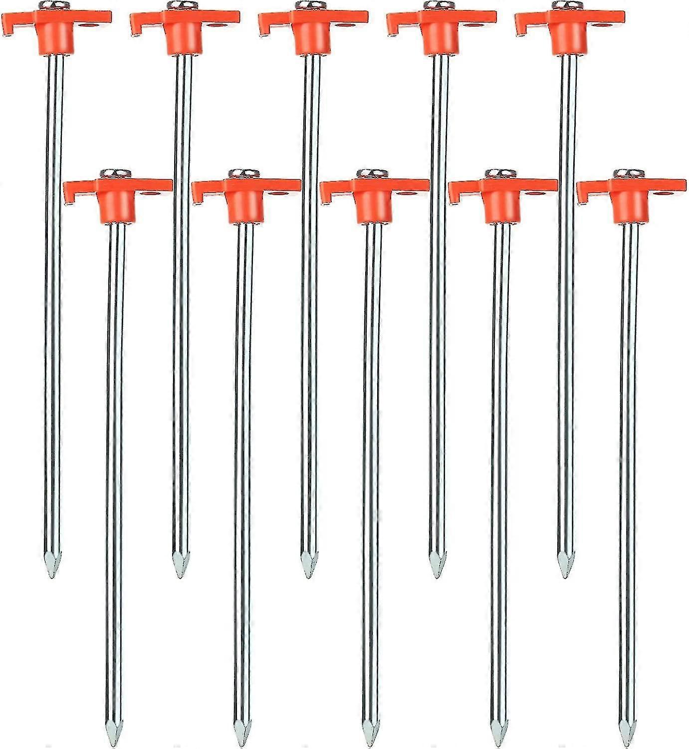 10 Pcs Durable Steel Tent Pegs, Camping Tent Pegs With Plastic Mount For Tent Nails, 8 X 250mm - Orange