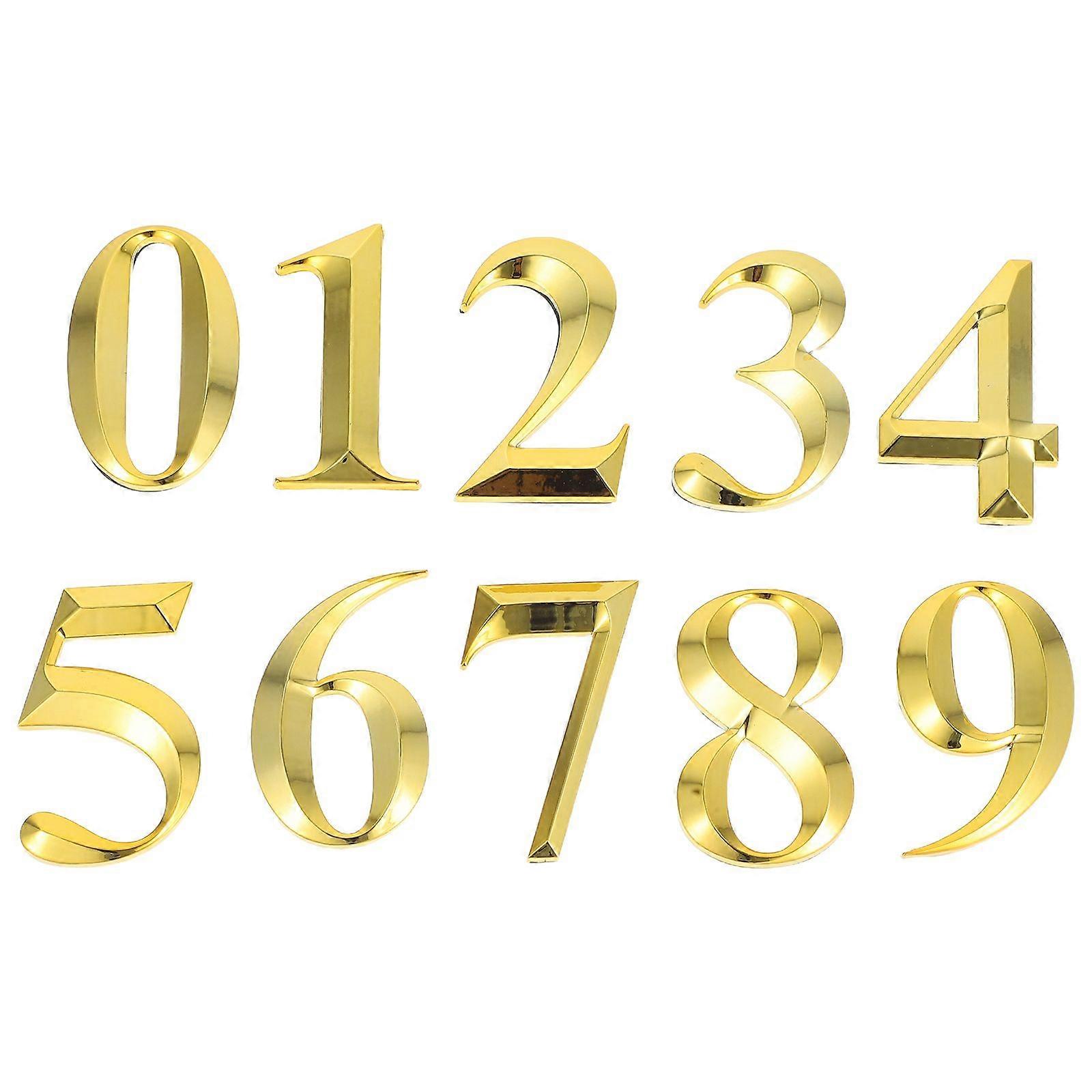 10pcs Self Adhesive House Numbers Plastic 0-9 House Numbers Golden 3D Mailbox Numbers for Outside Address Apartments Office Hotel Room
