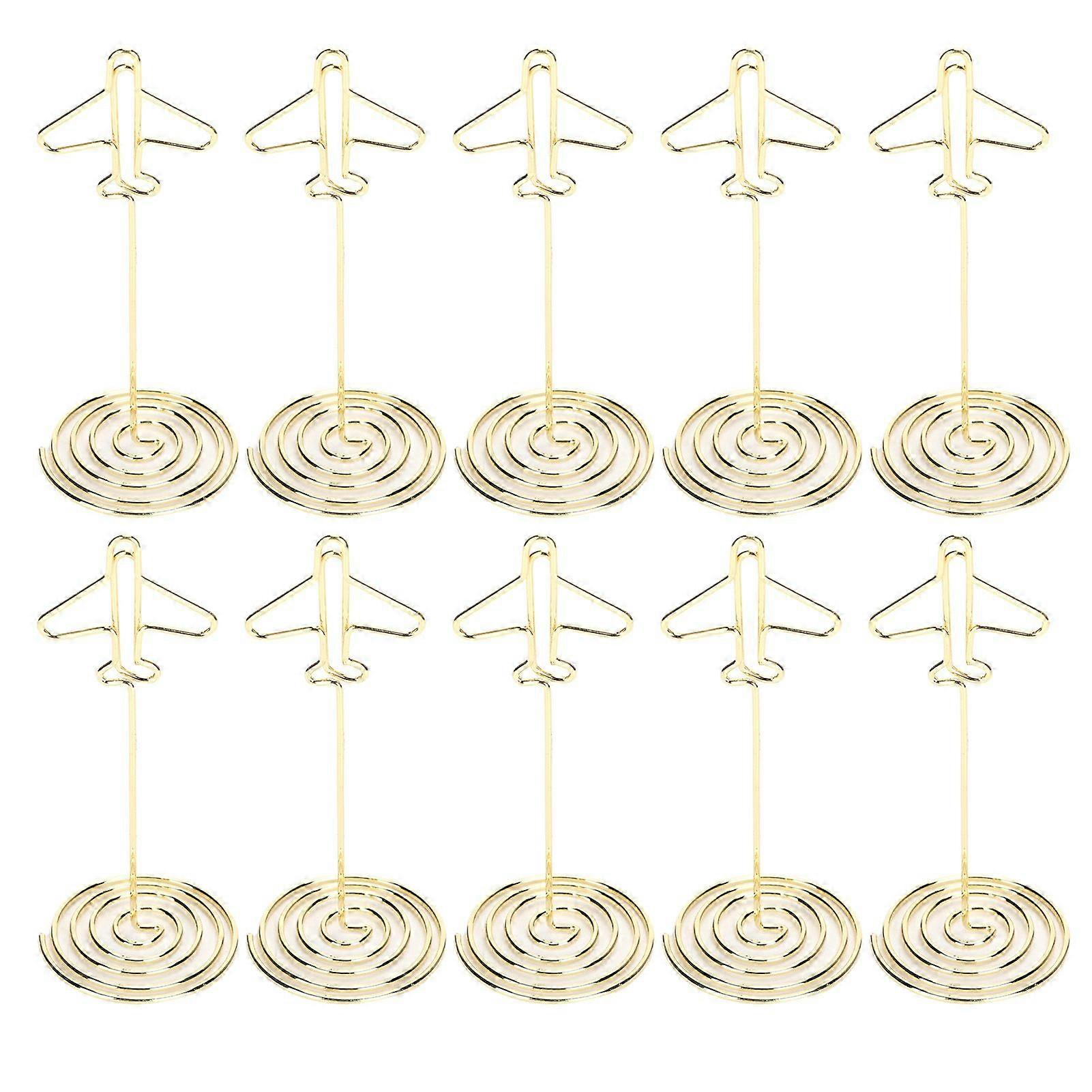 10Pcs Message Clip Desktop Metal Business Card Photo Golden Airplane Holder with Base