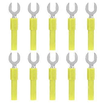 10pcs Fork Spade Wire Connectors Brass Material 6mm/0.2in Y Type 4mm/0.2in Hole Banana Plug 30Vac‑60Vdc Maximum.10AYellow