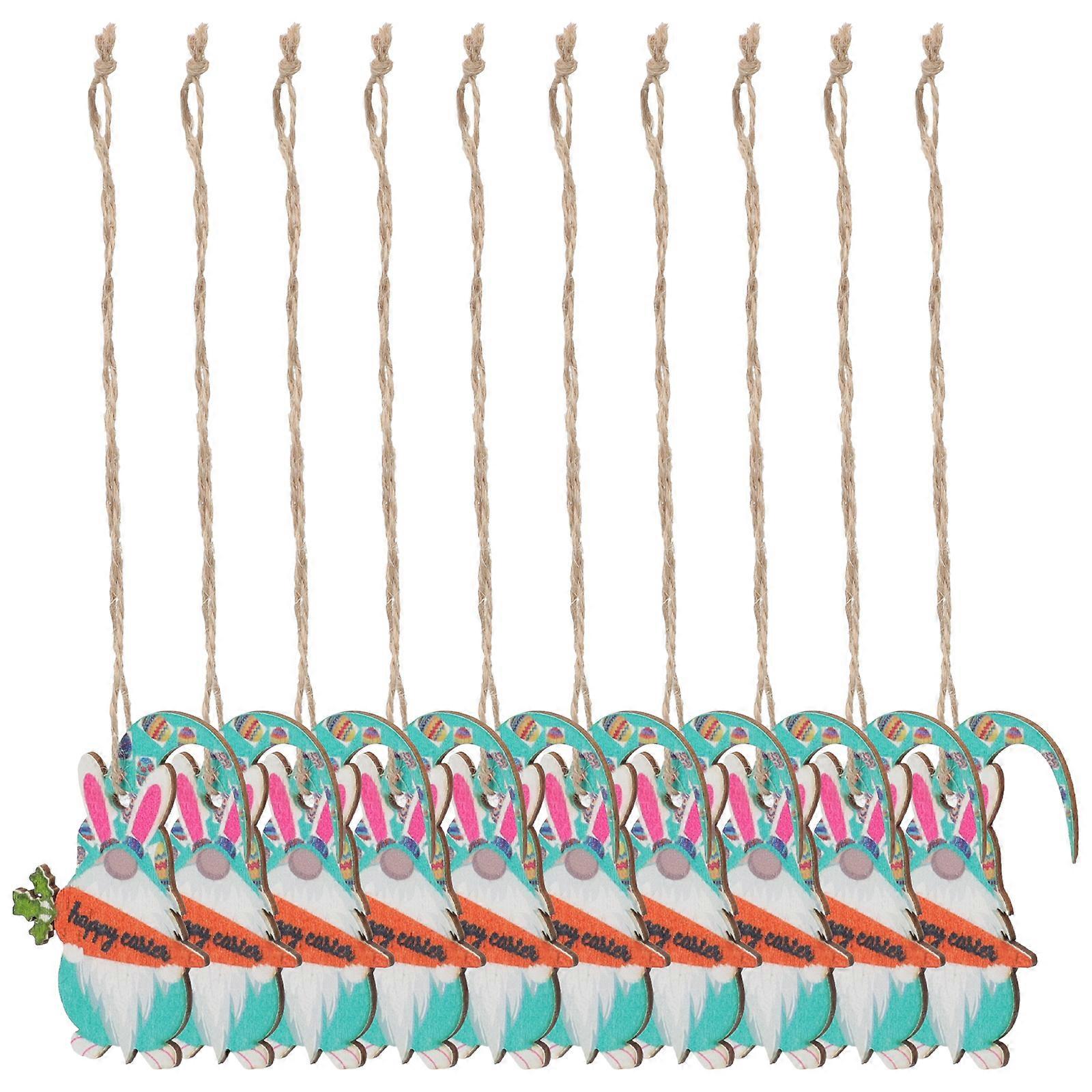 10pcs Easter Themed Party Hanging Decors Wooden Cartoon Gnome Cutouts Pendants
