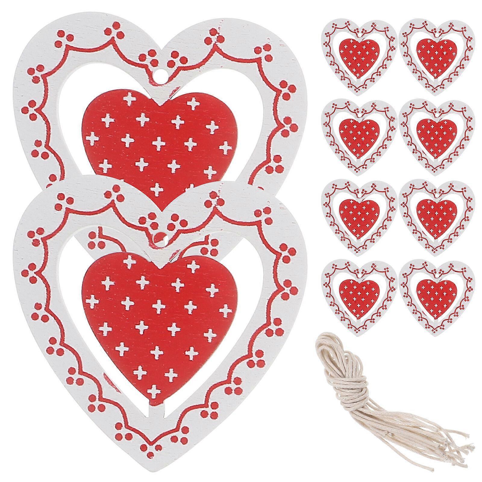 10pcs Christmas Hanging Pendant Wooden Love Heart Shape Hanging Ornament Craft Red Mini Wall Desktop Christmas Tree Decoration Supplies with Rope