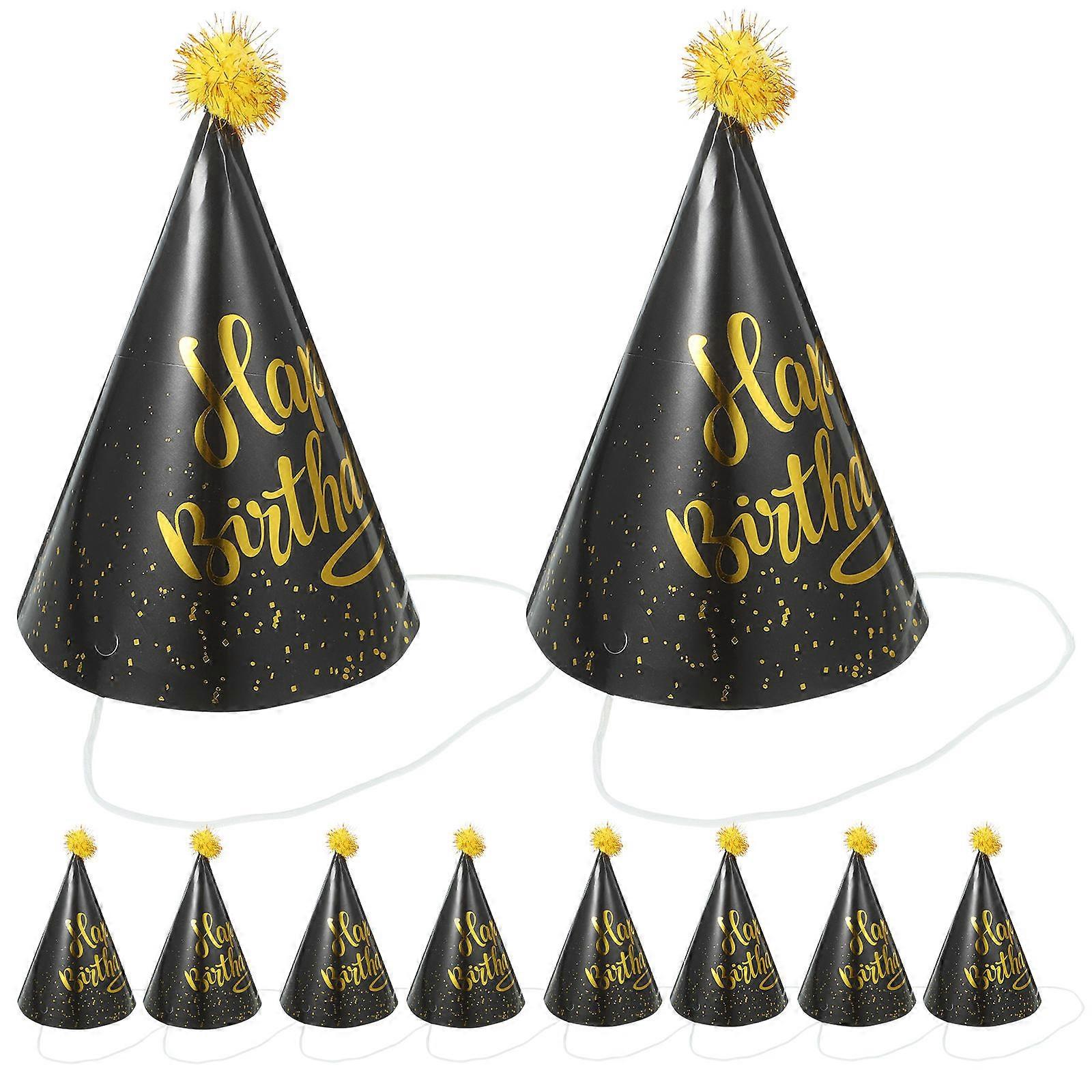 10pcs Birthday Party Cone Hats with Pom Pom Topper Lightweight Paper Party Headwear for Adults, Festivals & Anniversaries Decorations