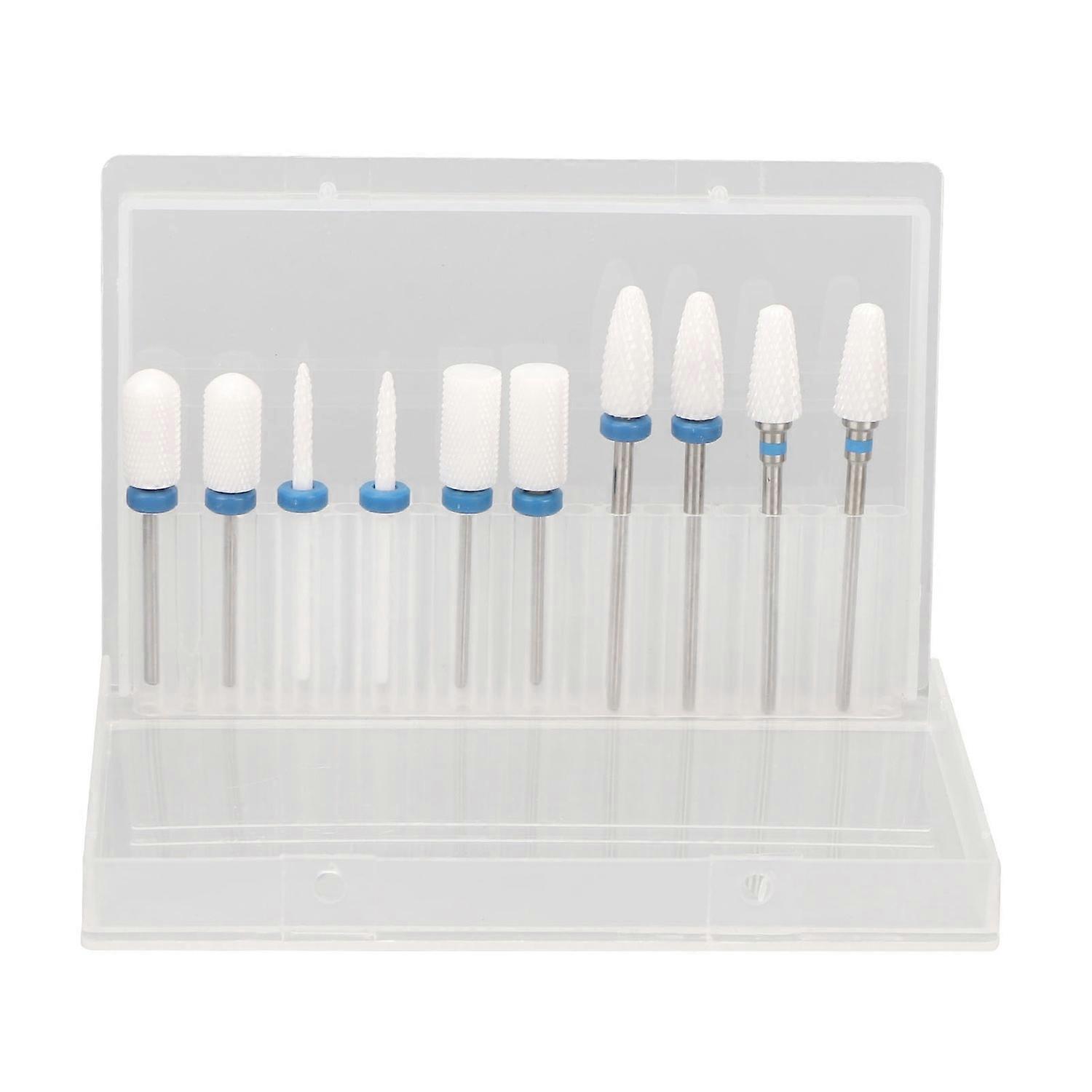10pcs Nail Drill Bits Set Home Salon Novice Ceramic Cuticle Remover Bits with 20 Hole Storage Box