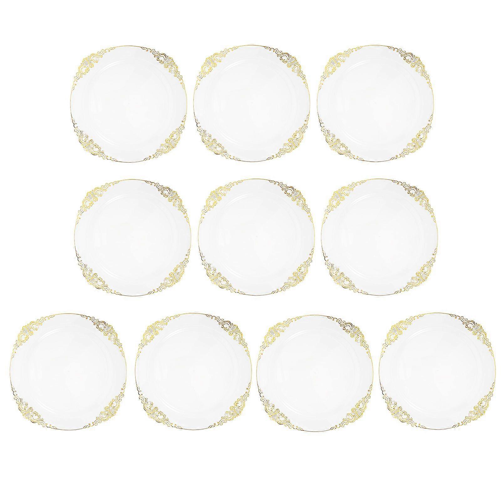 10pcs Clear Plates with Gold Rim: 10.22inch Disposable Plastic Serving Plate with Relief Trim for Parties and Weddings - Plastic Dinner Server