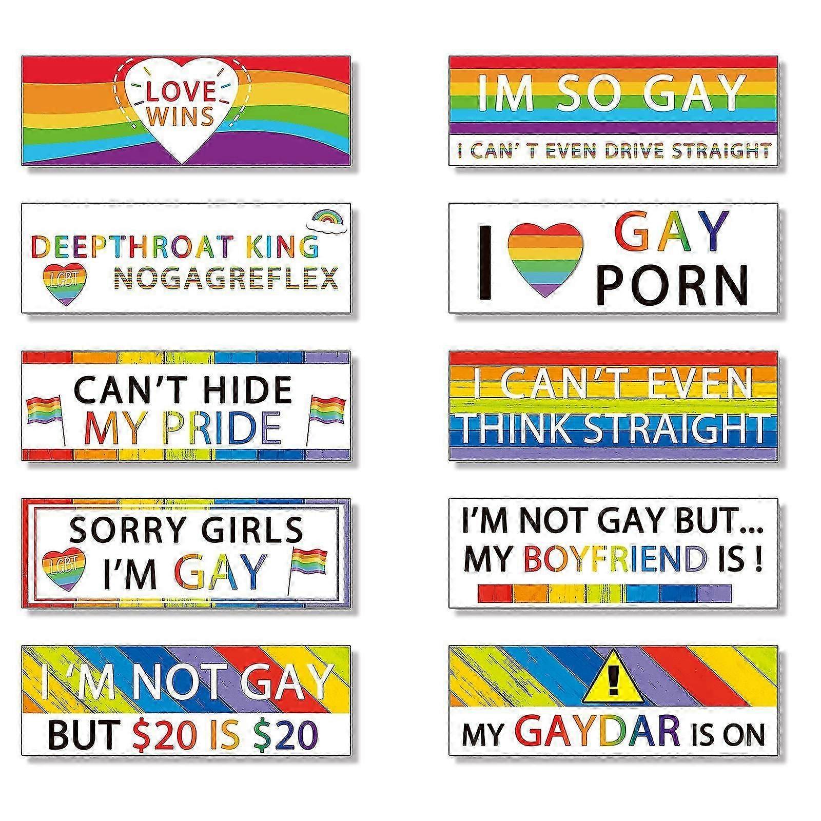 10 Pcs Funny Gay LGBT Bumper Stickers (Classic Style,Magnetic)