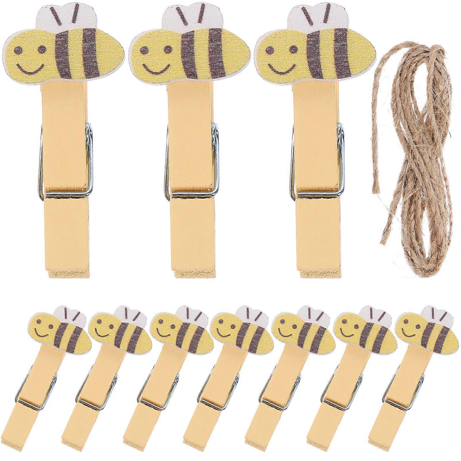 10PCS Handmade Wood Clips with Twine Cartoon Bee Mini Clothespin Photo Craft Snack Clips Party Favors for Display Photos Decoration Artwork
