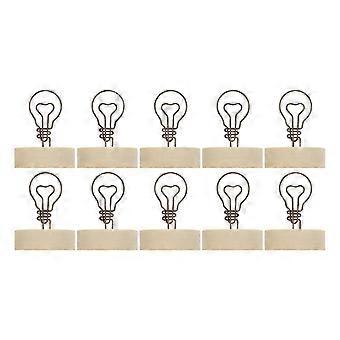 10 Pcs Place Card Holder Light Bulb Shape Vertical Wooden Base Position Card Holder Simple Cute Desktop Ornament
