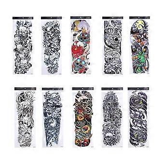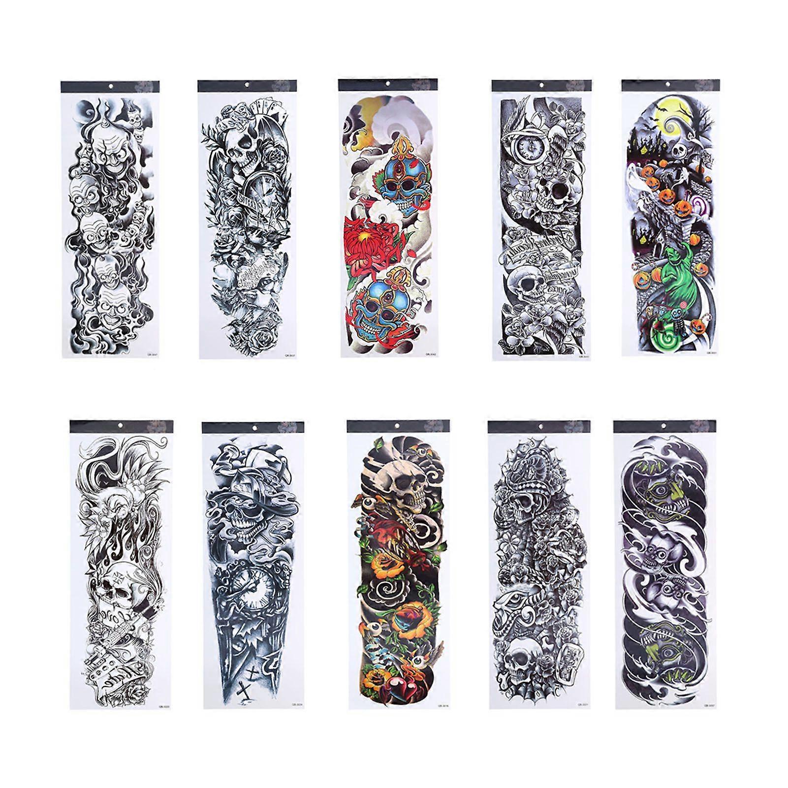10pcs Fake Tattoo Stickers Temporary Waterproof Skull Pattern Full Arm Tattoos for Halloween